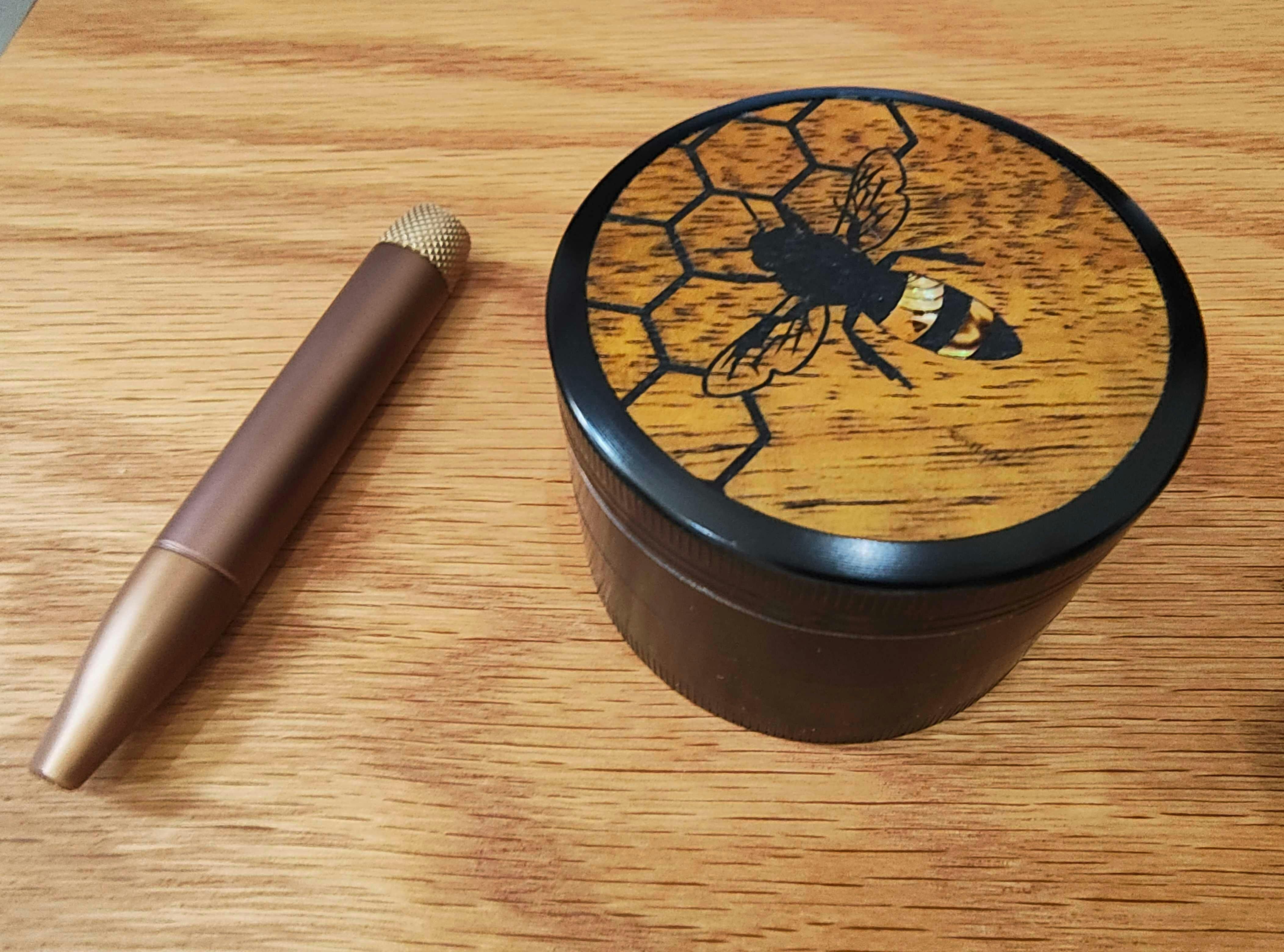 I've already purchased 'Save the Bees' products before and was needing a grinder. I remembered seeing the Thalia one prior, specs and price were more than acceptable. The inlay is beautiful, only complaint is it sits a hair shallow the edge of the hole sharp enough feel. It doesn't distract from the beauty or function.
